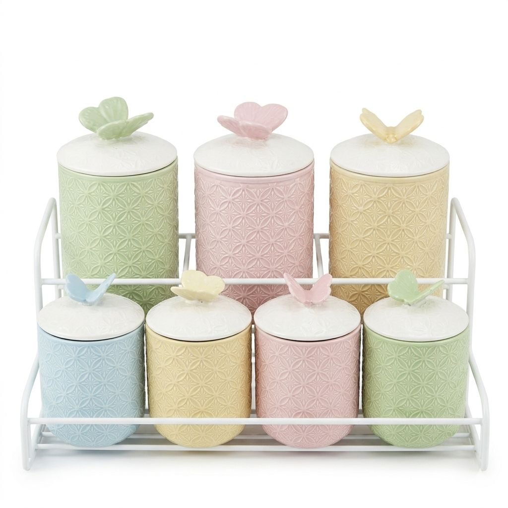 طقم توابل سيراميك “بترفلاي” – 7 قطع بألوان الباستيل المبهجة