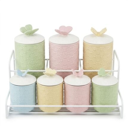 • العدد: يتكون الطقم من 7 قطع (علب توابل) بأحجام متناسقة.