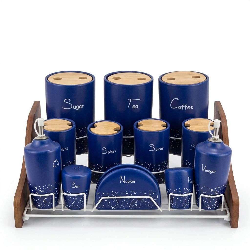 أضيفي لمسة من الفخامة العصرية إلى مطبخك مع هذا الطقم المتكامل الذي يجمع بين التصميم “المودرن” واللون الأزرق العميق المنقط (Galaxy Style)، ليمنح ركن القهوة أو رخامة المطبخ مظهراً استثنائياً.
