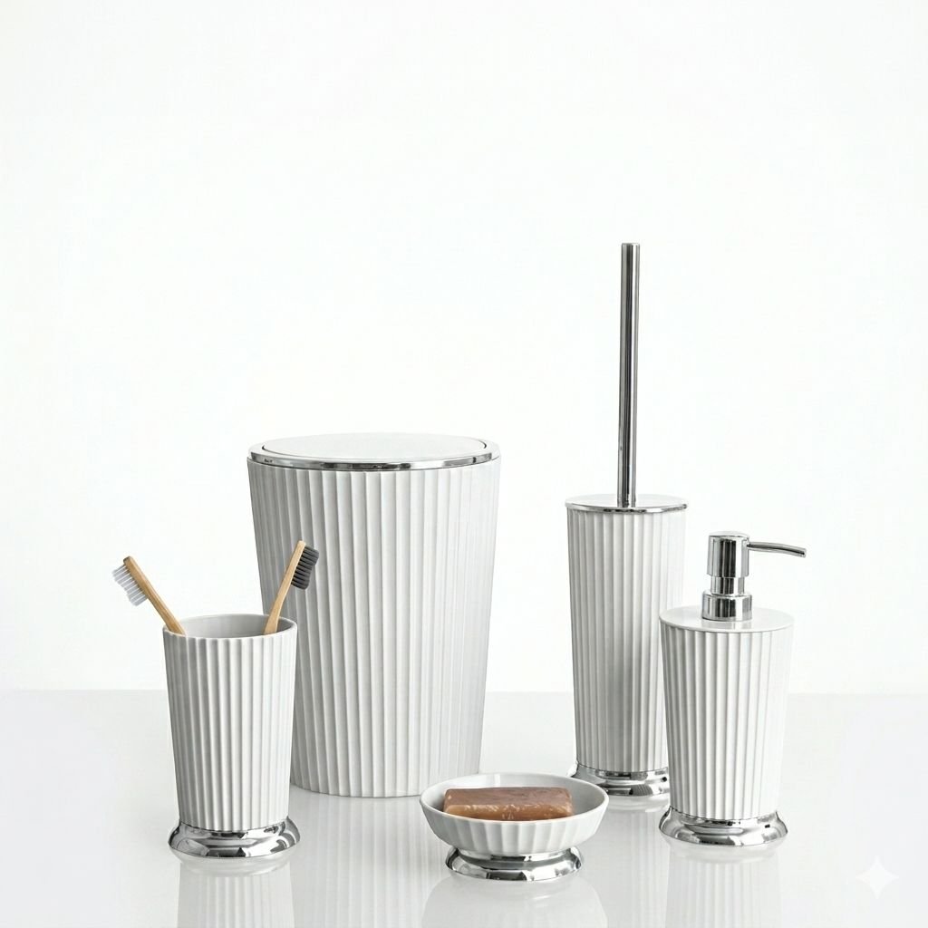 طقم إكسسوارات حمام مودرن – 5 قطع (أبيض مخطط)